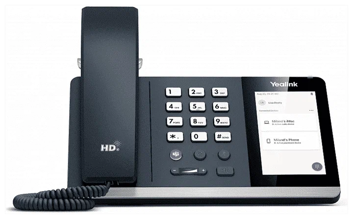 Yealink MP50 оснащен 4» емкостным сенсорным экраном, поддерживает работу с UC-платформами и обеспечивает возможность совершения/приема звонков с ПК и мобильных устройств.